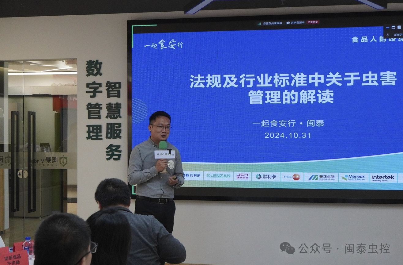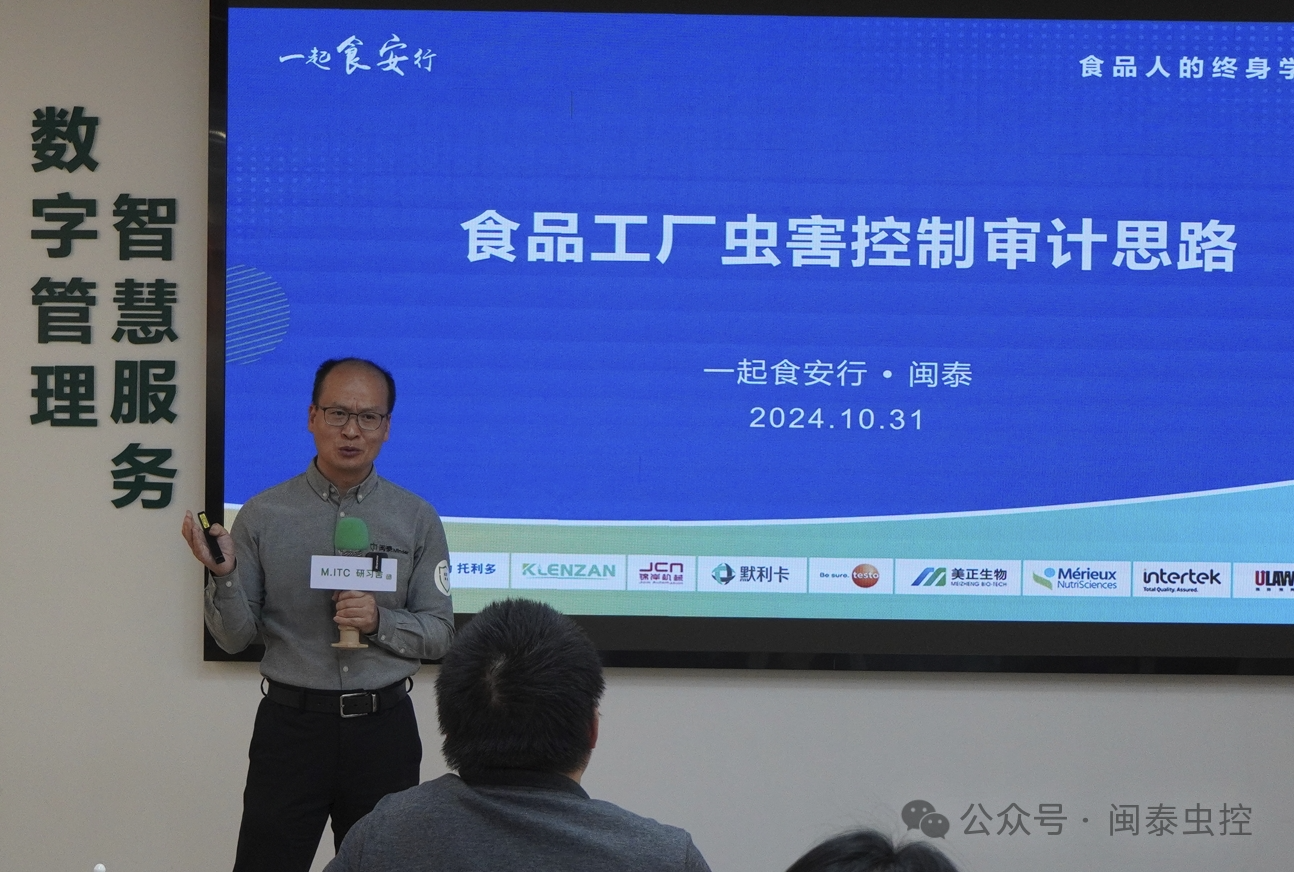 2024年10月31日,“一起食安行×閩泰蟲害管理公開課”在上海圓滿落幕。本次活動以食品安全為核心,特別聚焦于蟲害管理領(lǐng)域,吸引了來自全國各地的食品行業(yè)專業(yè)人士參與。此次培訓(xùn)不僅強(qiáng)化了大家的理論知識,還通過實地考察和互動交流提供了寶貴的實際操作經(jīng)驗。