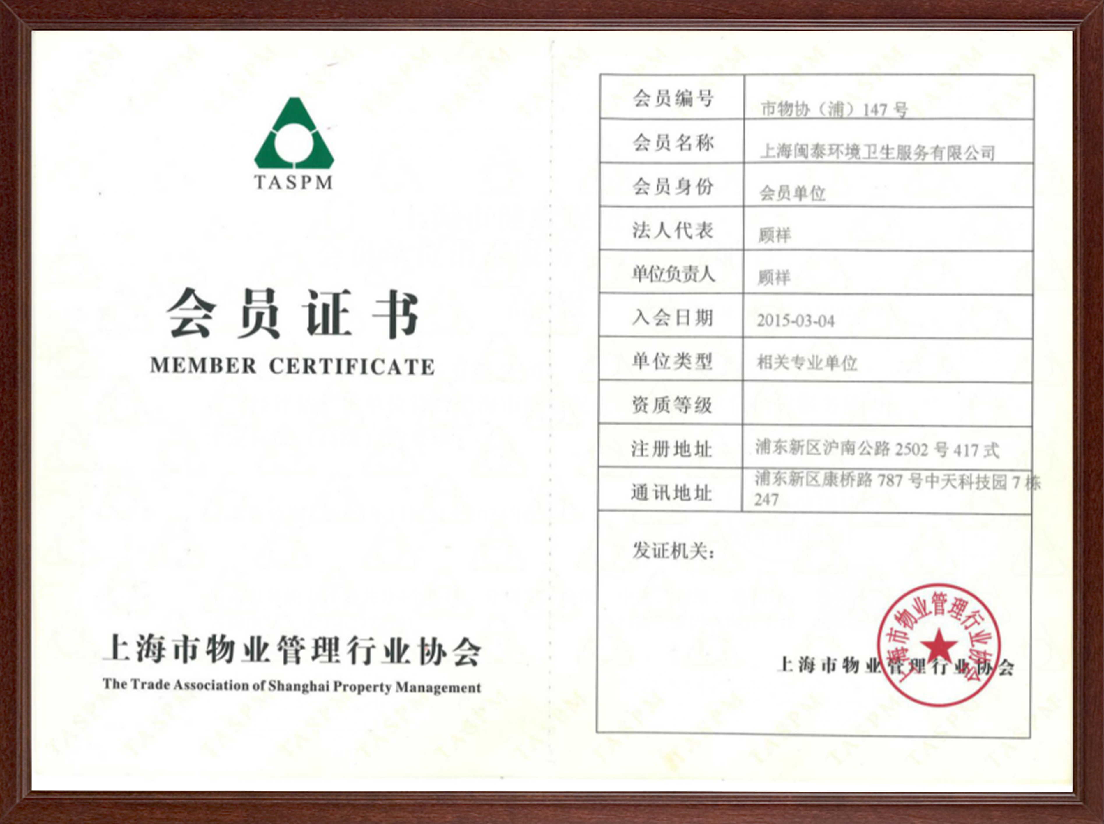 上海市健康促進(jìn)協(xié)會(huì)頒發(fā)的5星級(jí)資質(zhì)